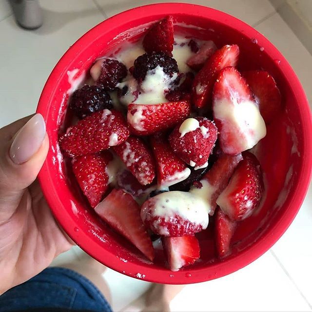 - 1 porção de fruta picada (banana, morango ou maçã)